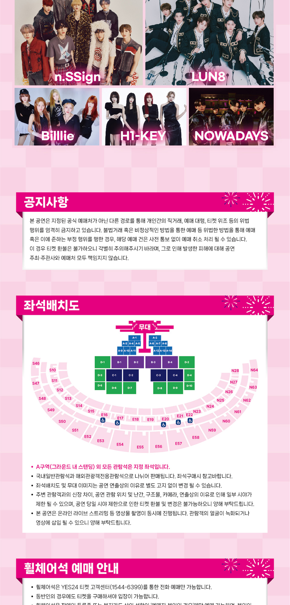 그라운드 A구역(스탠딩) 50,000원, 그라운드 B구역(지정석) 40,000원, 그라운드 C구역(지정석) 30,000원, 그라운드 D구역(지정석) 20,000원, 스탠드석(지정석) 10,000원