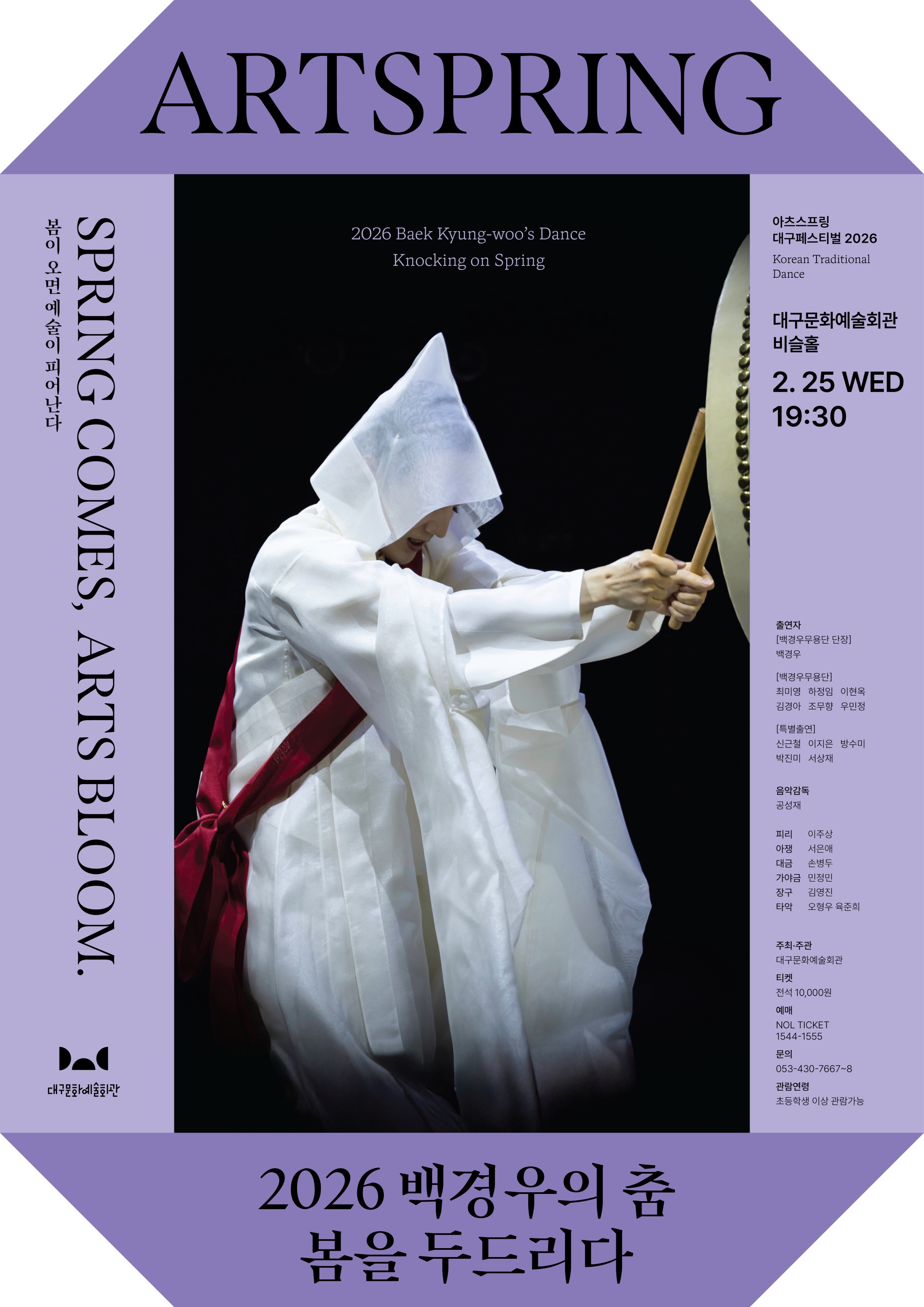 ![아츠스프링 대구 페스티벌, 백경우의 춤: 봄을 두드리다 [대구]](https://kopis.or.kr/upload/pfmPoster/PF_PF283787_260123_135924.jpg)