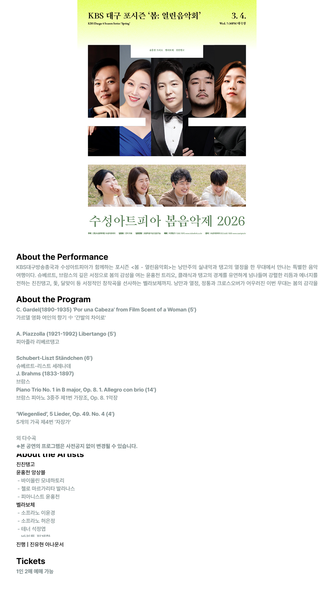 수성아트피아 시즌페스티벌, 봄 음악제: 대구KBS포시즌, 봄: 열린음악회