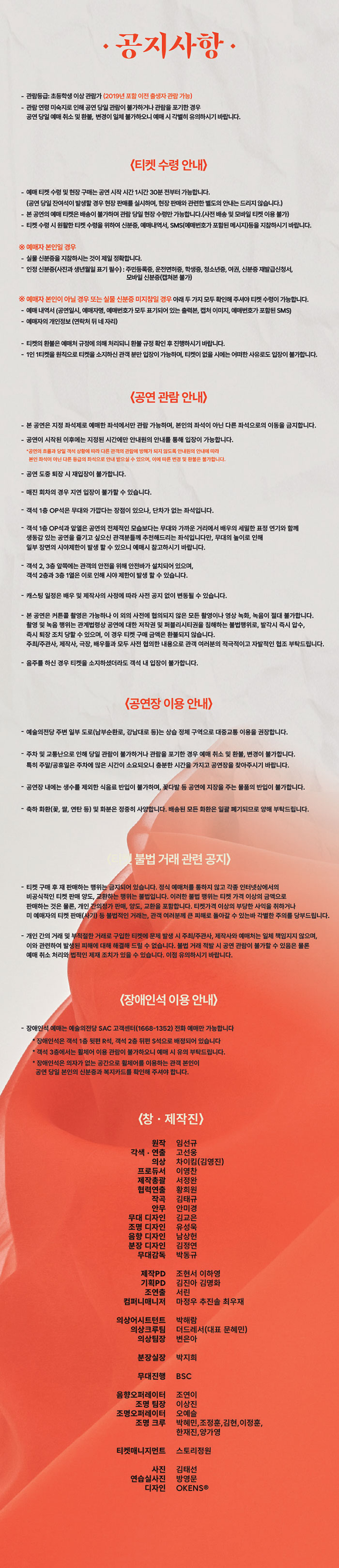 화요일(19:30), 수요일(15:00,19:30), 목요일(19:30), 금요일(15:00,19:30), 토요일(15:00,19:30), 일요일(15:00)
