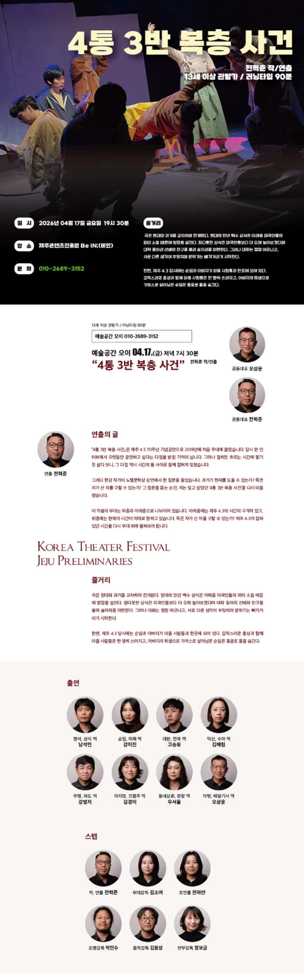 ![제44회 대한민국연극제 제주대 및 제31회 제주연극제: 4통 3반 복층 사건 [제주] 상세 2](https://kopis.or.kr/upload/pfmIntroImage/PF_PF288993_202604091126301180.jpg)